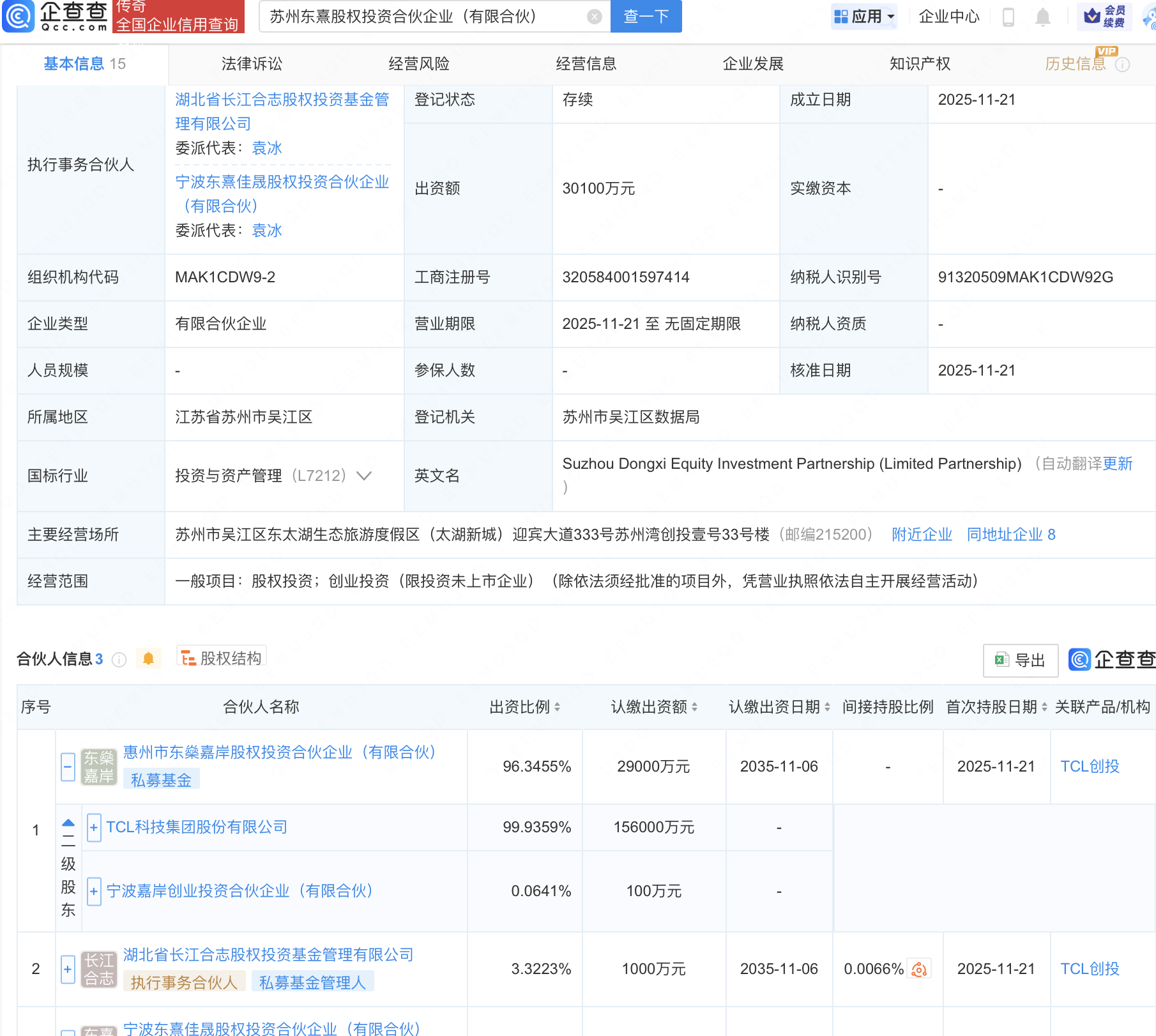 近日国家正规炒股平台,苏州东熹股权投资合伙企业(有限合伙)成立,出资额3.01亿元,经营范围包含:股权投资;创业投资(限投资未上市企业)。企查查股权穿透显示,该企业由TCL科技(000100)旗下惠州市东燊嘉岸股权投资合伙企业(有限合伙)等共同出资。