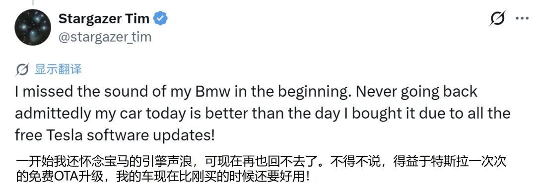 更有不少用户在社交平台上晒出自己的用车体验,直言被特斯拉彻底圈粉,再也换不回燃油车: