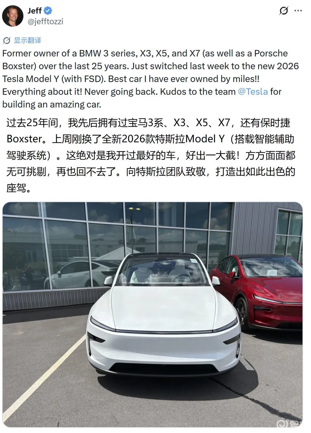“特斯拉是我开过最好的车,方方面面都无可挑剔。”
